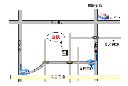 周辺地図 Google mapで見る 当院専用の駐車場に15台まで駐車できます 静鉄バス「登呂南」バス停下車 西へ徒歩5分 石田街道二筋西側の道路沿い、東名高速道路の100m北 大浜街道から東名高速の北側側道を入り、二つ目の信号を左折 うえだ小児科 〒422-8033 静岡市駿河区登呂6-13-36 TEL.054-282-2322